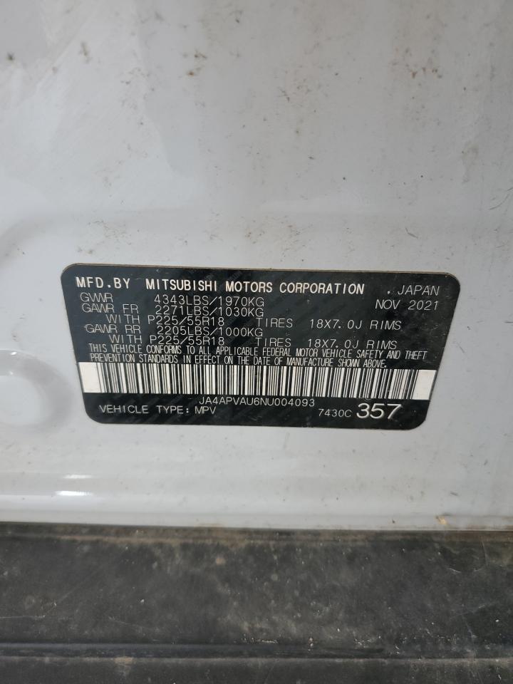 2022 MITSUBISHI OUTLANDER - JA4APVAU6NU004093, колір - Білий, 2.0, Бензин, із США