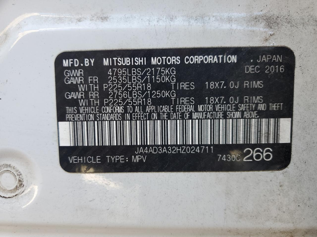 2017 MITSUBISHI OUTLANDER - JA4AD3A32HZ024711, колір - Білий, 2.4, Бензин, із США