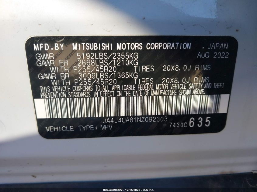 2022 MITSUBISHI OUTLANDER ES