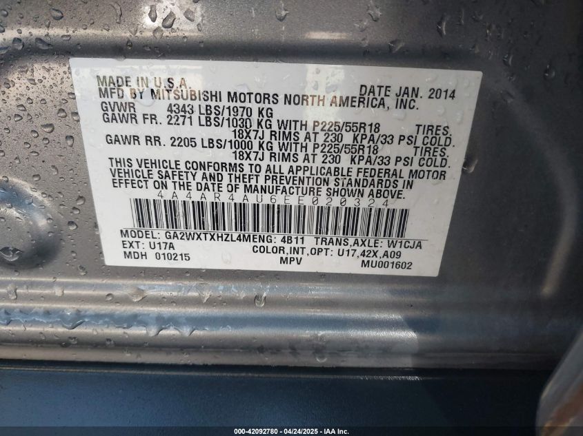 2014 MITSUBISHI OUTLANDER SPORT - 4A4AR4AU6EE020324, колір - Сірий, 2.0, Бензин, Повний привід із США