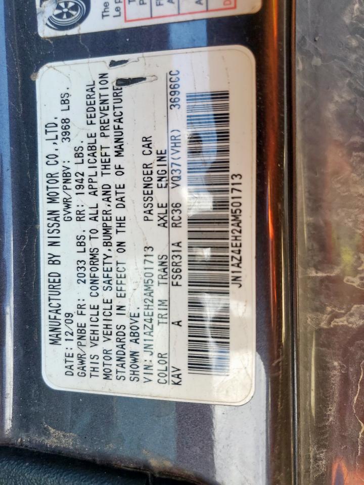 2010 NISSAN 370Z - JN1AZ4EH2AM501713, колір - Деревне вугілля, 3.7, Бензин, Задній привід із США