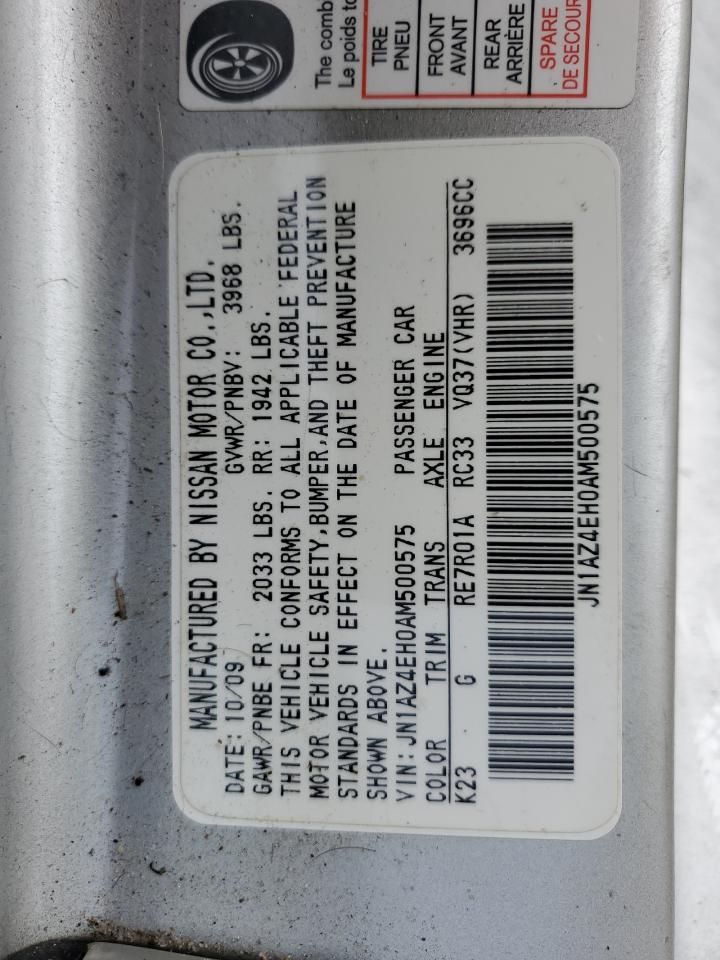 2010 NISSAN 370Z - JN1AZ4EH0AM500575, колір - Срібний, 3.7, Бензин, Задній привід із США