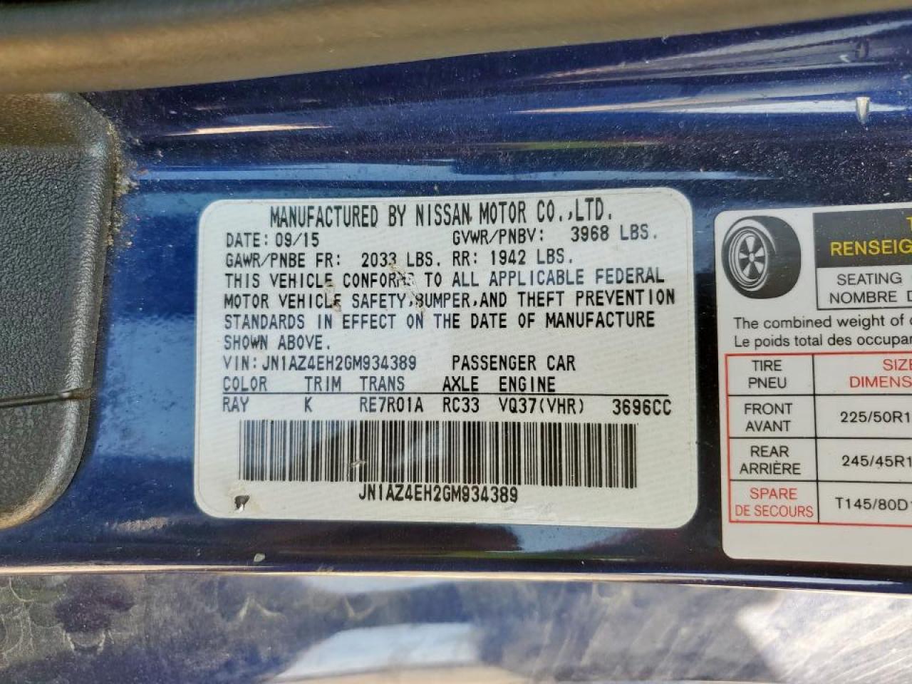 2016 NISSAN 370Z - JN1AZ4EH2GM934389, колір - Синій, 3.7, Бензин, Задній привід із США