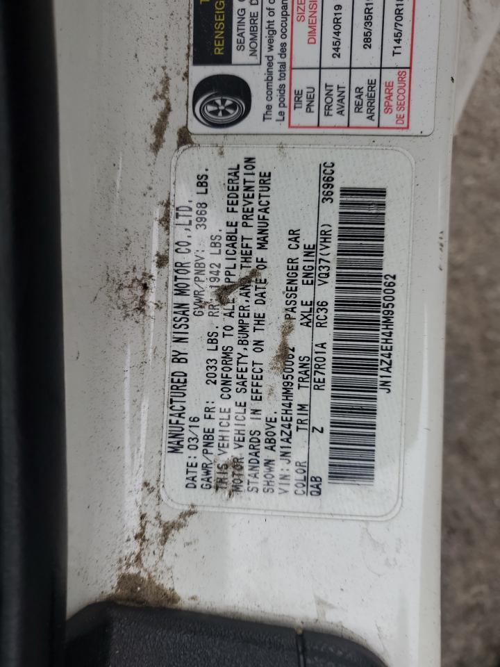 2017 NISSAN 370Z - JN1AZ4EH4HM950062, колір - Білий, 3.7, Бензин, Задній привід із США