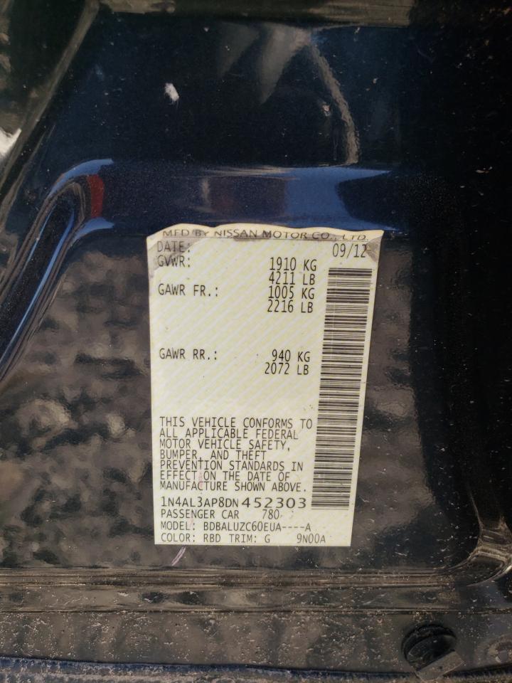 2013 NISSAN ALTIMA - 1N4AL3AP8DN452303, колір - Чорний, 2.5, Бензин, із США
