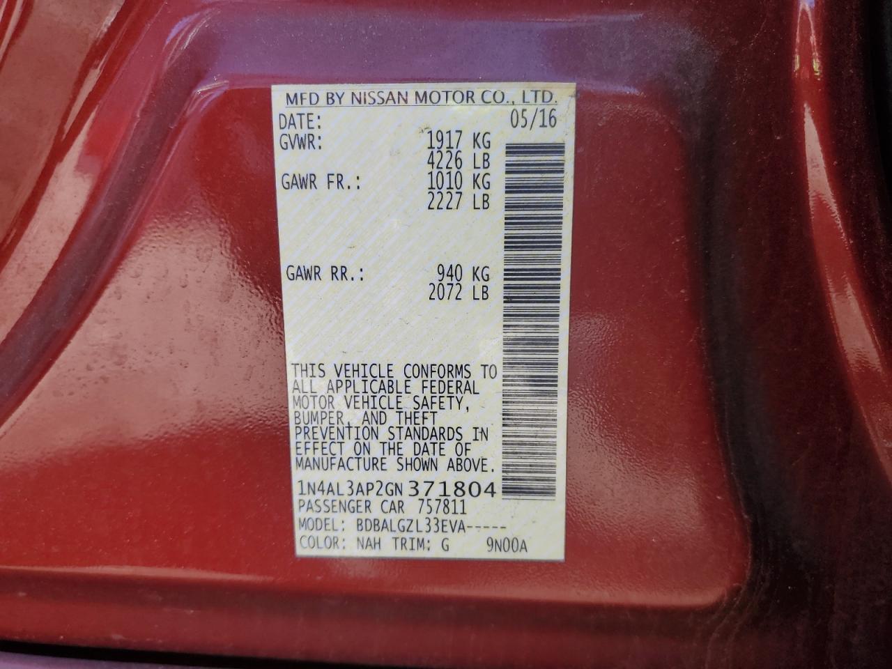 Колір ЧервонийЦиліндри 4VIN 1N4AL3AP2GN371804Стан Заводиться та їде (перевірено)Ушкодження Передня або задня