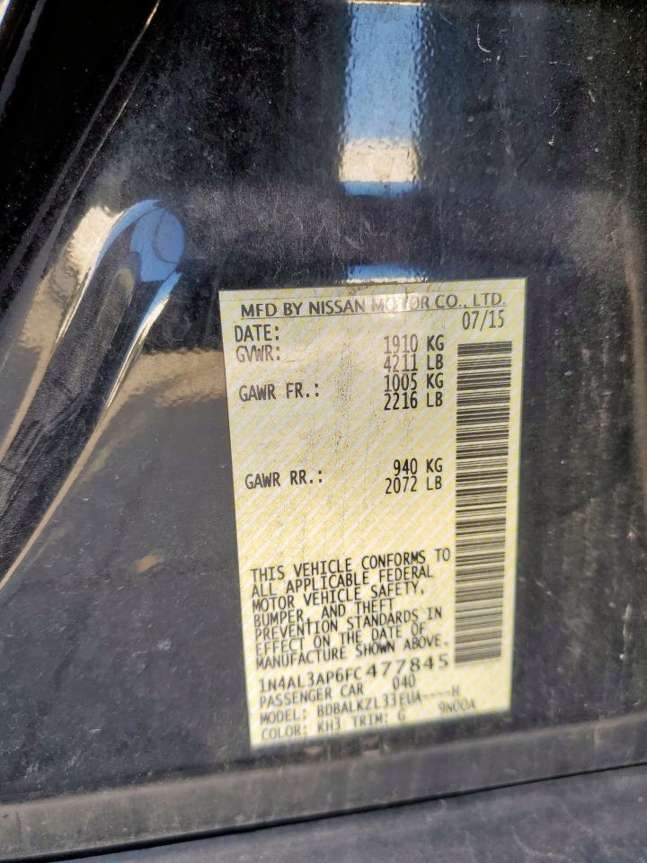 2015 NISSAN ALTIMA - 1N4AL3AP6FC477845, колір - Чорний, 2.5, Бензин, із США