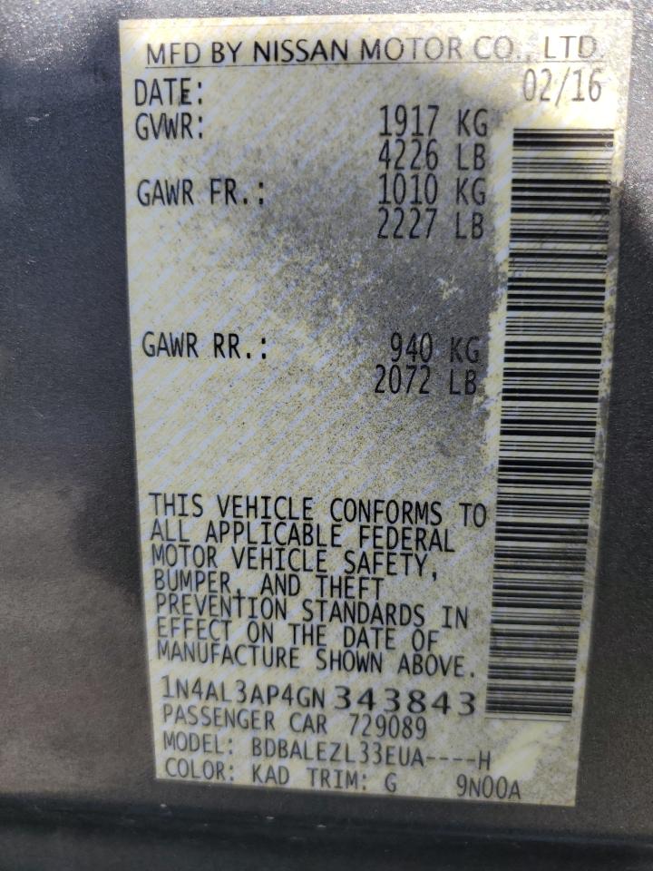 2016 NISSAN ALTIMA - 1N4AL3AP4GN343843, колір - Сірий, 2.5, Бензин, із США