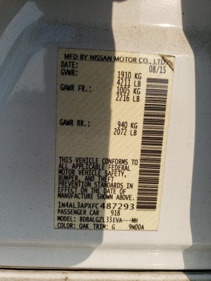 2015 NISSAN ALTIMA - 1N4AL3APXFC487293, колір - Білий, 2.5, Бензин, із США