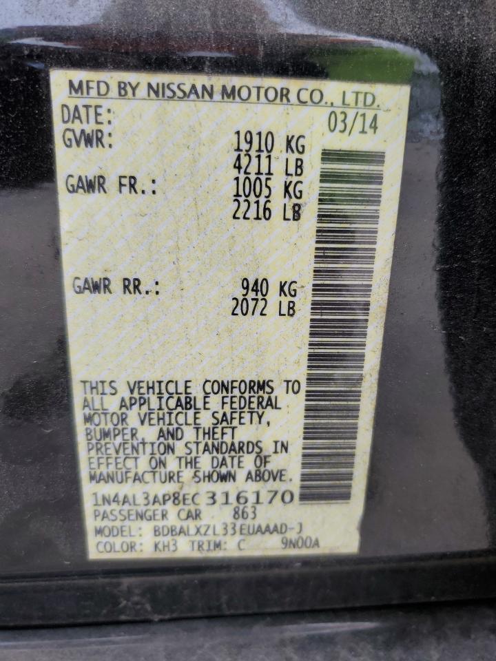 2014 NISSAN ALTIMA - 1N4AL3AP8EC316170, колір - Чорний, 2.5, Бензин, із США