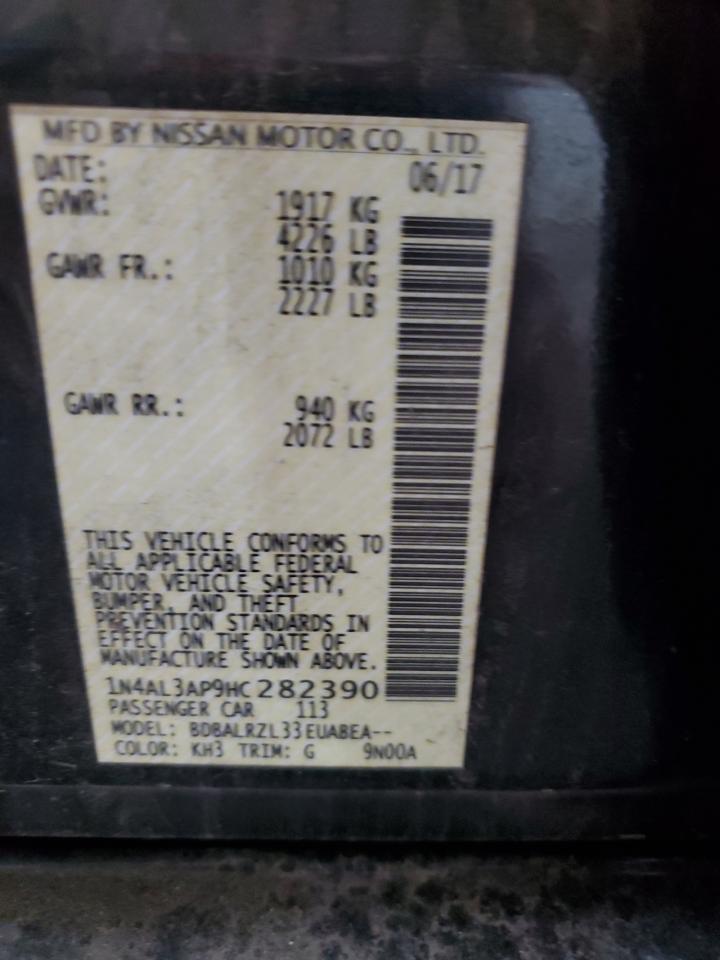 2017 NISSAN ALTIMA - 1N4AL3AP9HC282390, колір - Чорний, 2.5, Бензин, із США