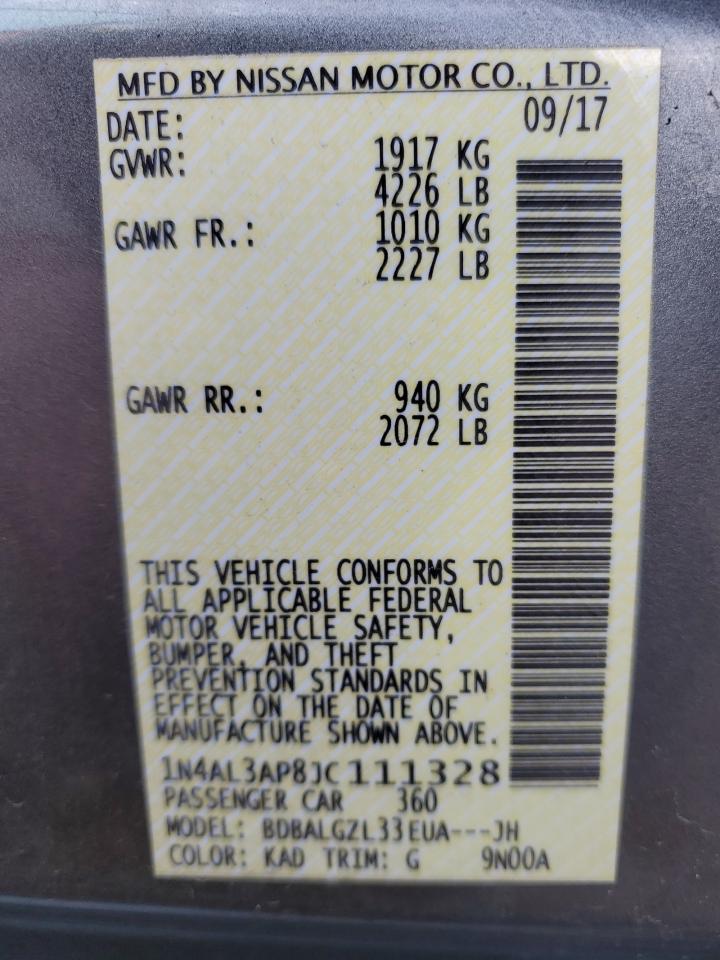 2018 NISSAN ALTIMA - 1N4AL3AP8JC111328, колір - Сірий, 2.5, Бензин, із США