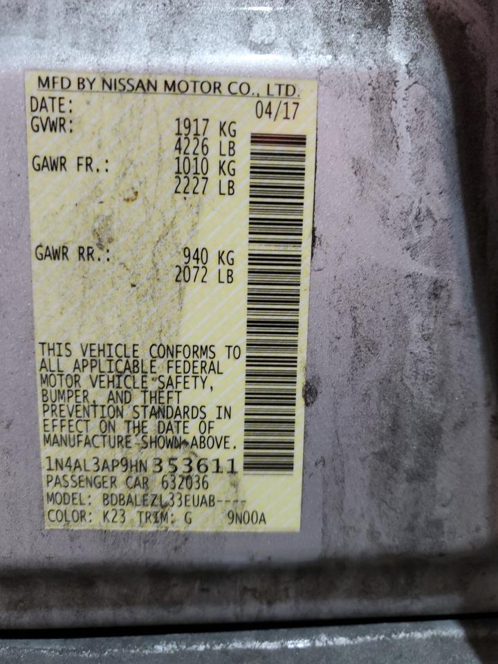 2017 NISSAN ALTIMA - 1N4AL3AP9HN353611, колір - Срібний, 2.5, Бензин, із США