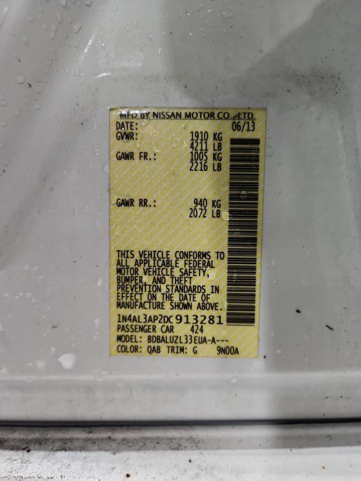 2013 NISSAN ALTIMA - 1N4AL3AP2DC913281, колір - Білий, 2.5, Бензин, із США