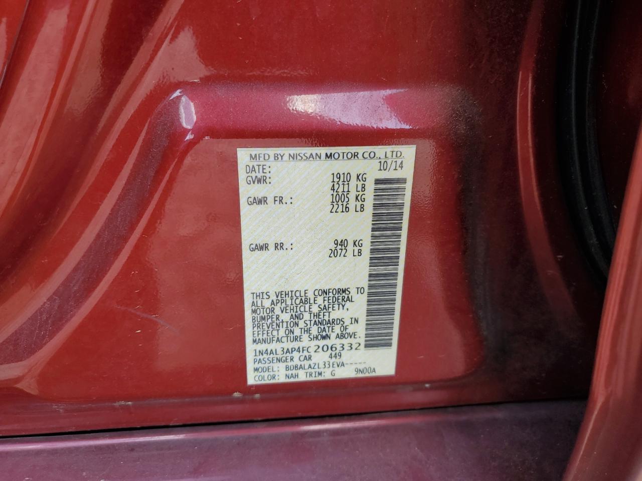 Колір ЧервонийЦиліндри 4VIN 1N4AL3AP4FC206332Стан Заводиться та їде (перевірено)Ушкодження З боків