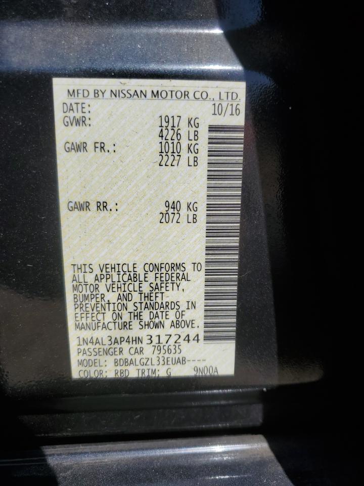 2017 NISSAN ALTIMA - 1N4AL3AP4HN317244, колір - Сірий, 2.5, Бензин, із США