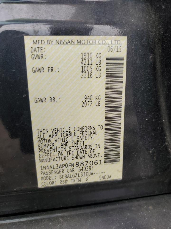 2015 NISSAN ALTIMA - 1N4AL3AP0FN887061, колір - Синій, 2.5, Бензин, із США