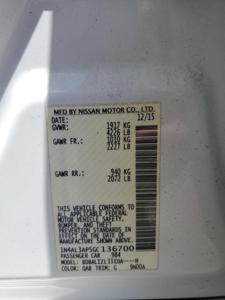 2016 NISSAN ALTIMA - 1N4AL3AP5GC136700, колір - Білий, 2.5, Бензин, із США