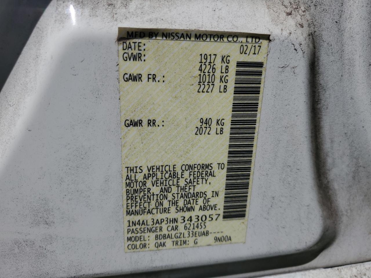 Колір БілийЦиліндри 4VIN 1N4AL3AP3HN343057Стан Заводиться та їде (перевірено)Ушкодження Передня або задня