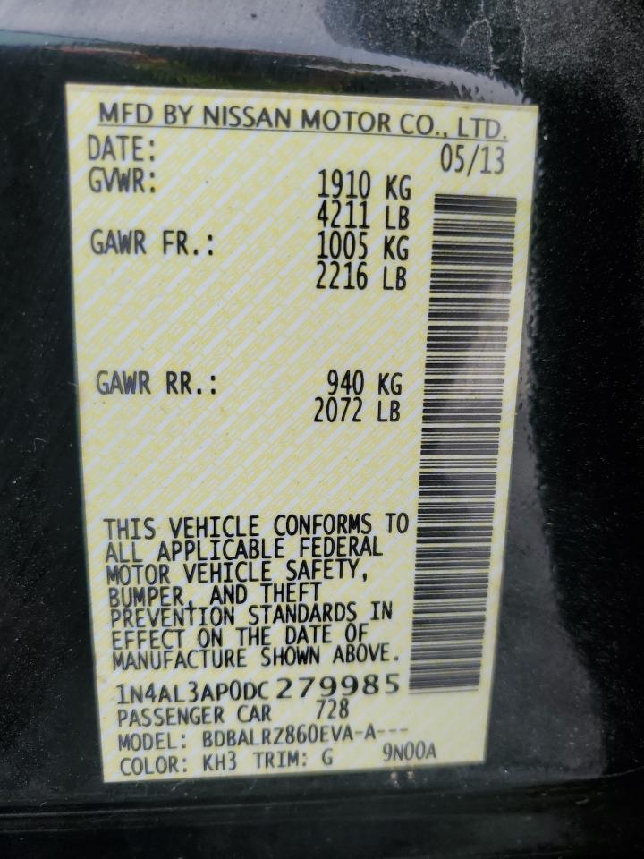 2013 NISSAN ALTIMA - 1N4AL3AP0DC279985, колір - Чорний, 2.5, Бензин, із США