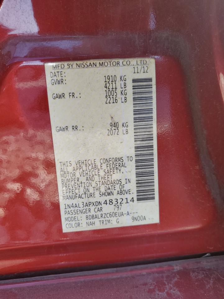 2013 NISSAN ALTIMA - 1N4AL3APXDN483214, колір - Бургундія, 2.5, Бензин, із США