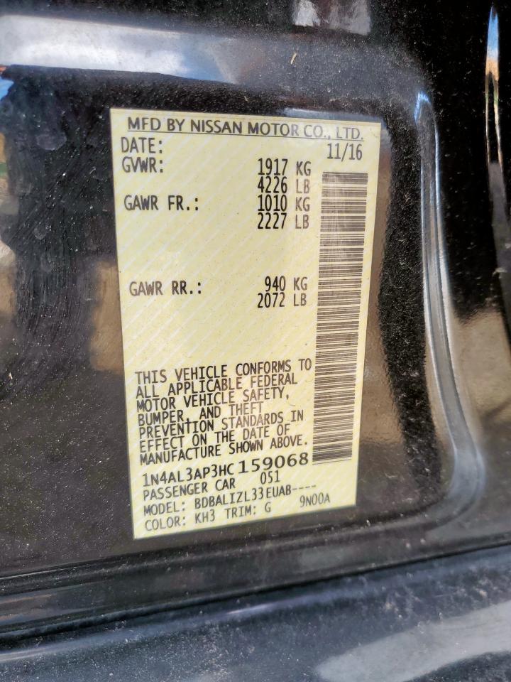 2017 NISSAN ALTIMA - 1N4AL3AP3HC159068, колір - Чорний, 2.5, Бензин, із США