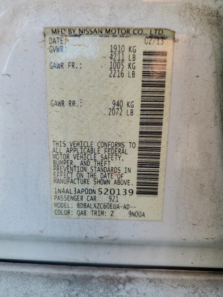 2013 NISSAN ALTIMA - 1N4AL3AP0DN520139, колір - Білий, 2.5, Бензин, із США