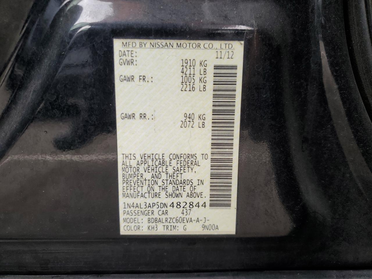 Колір ЧорнийЦиліндри 4VIN 1N4AL3AP5DN482844Стан Заводиться та їде (перевірено)Ушкодження НезначніДата аукціона 2025-10-09