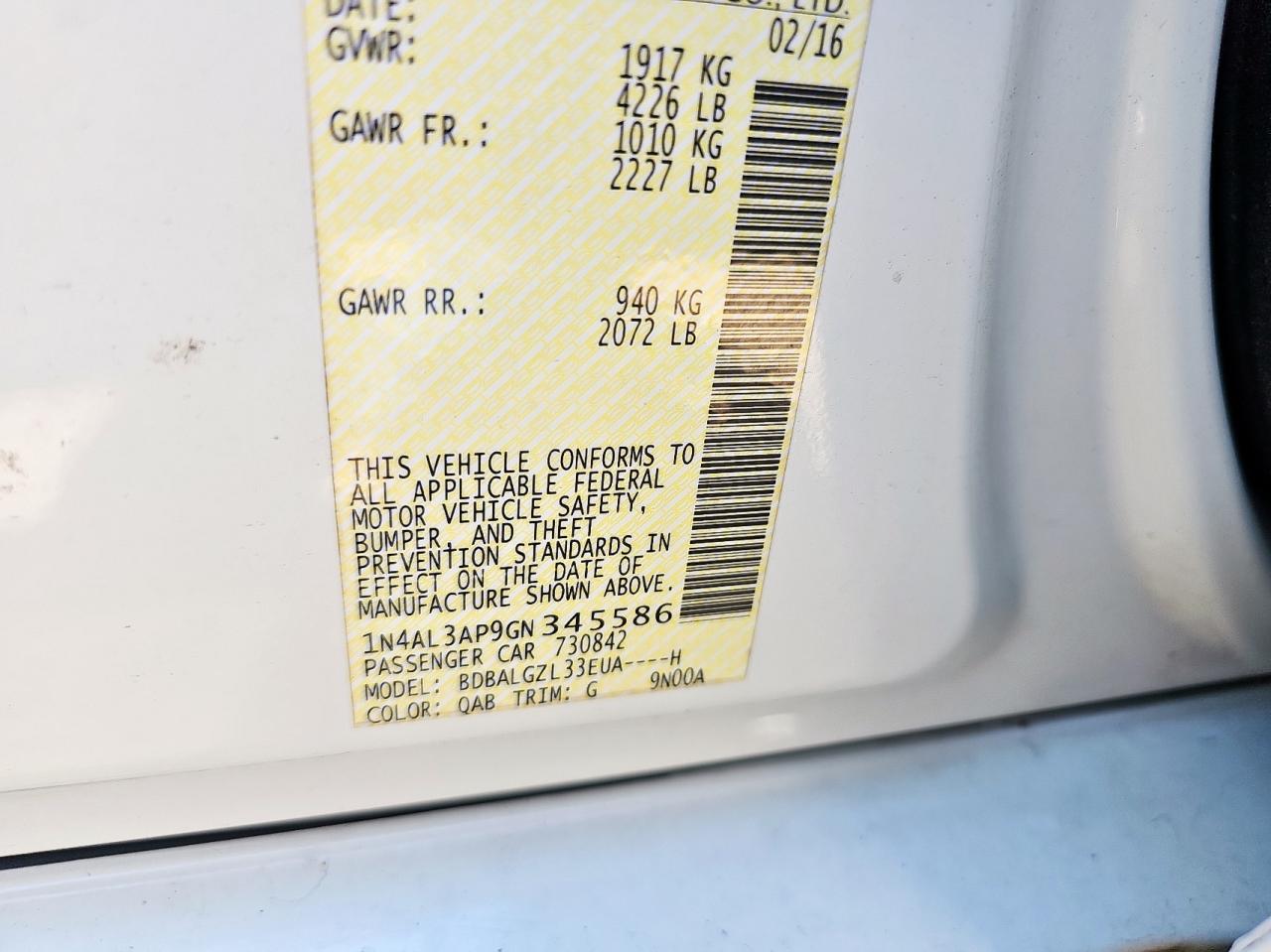 Колір БілийЦиліндри 4VIN 1N4AL3AP9GN345586Стан Заводиться та їде (перевірено)Ушкодження НезначніДата аукціона 2025-10-09