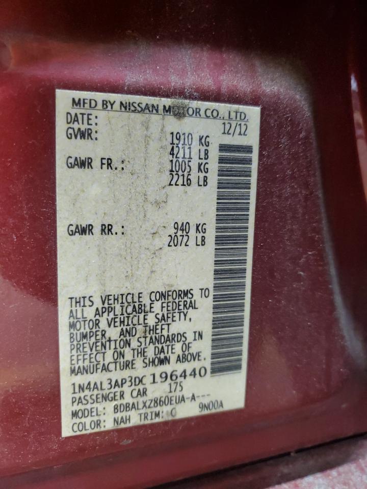 2013 NISSAN ALTIMA - 1N4AL3AP3DC196440, колір - Бургундія, 2.5, Бензин, із США