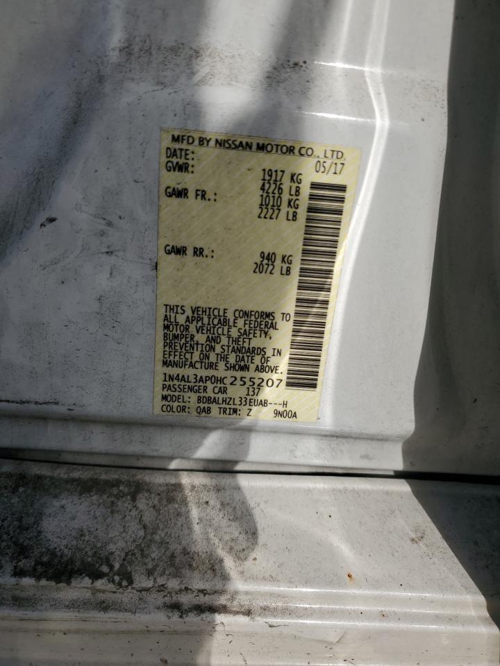 2017 NISSAN ALTIMA - 1N4AL3AP0HC255207, колір - Білий, 2.5, Бензин, із США