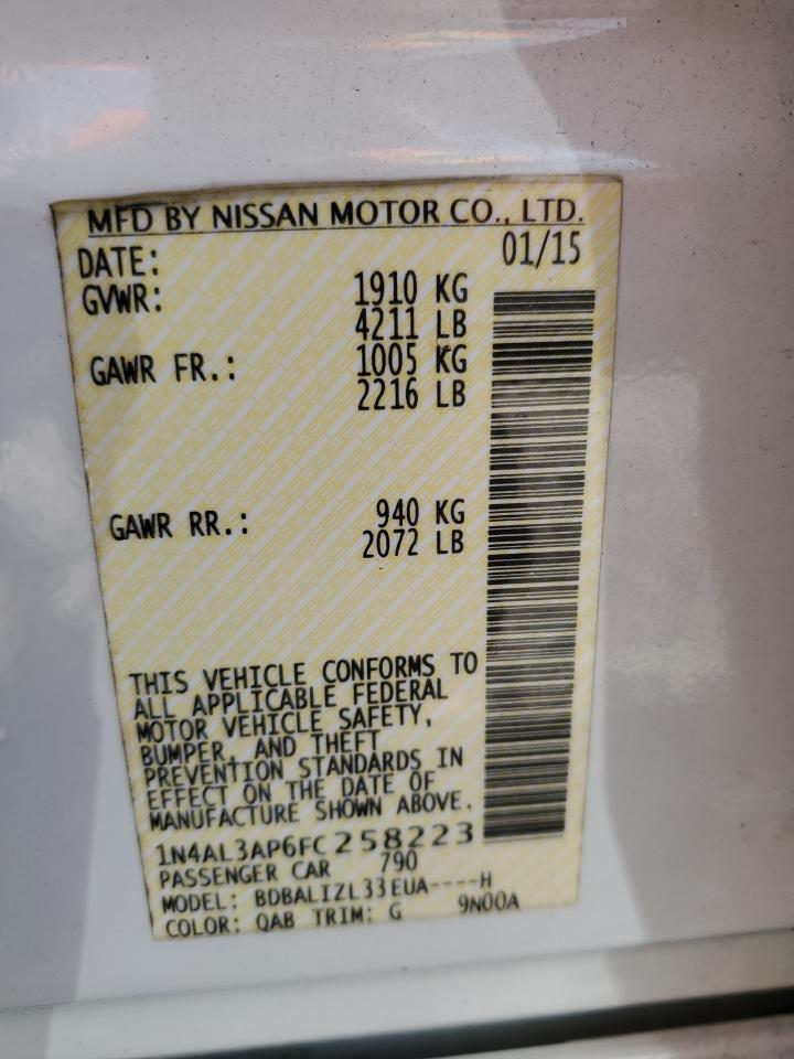 2015 NISSAN ALTIMA - 1N4AL3AP6FC258223, колір - Білий, 2.5, Бензин, із США