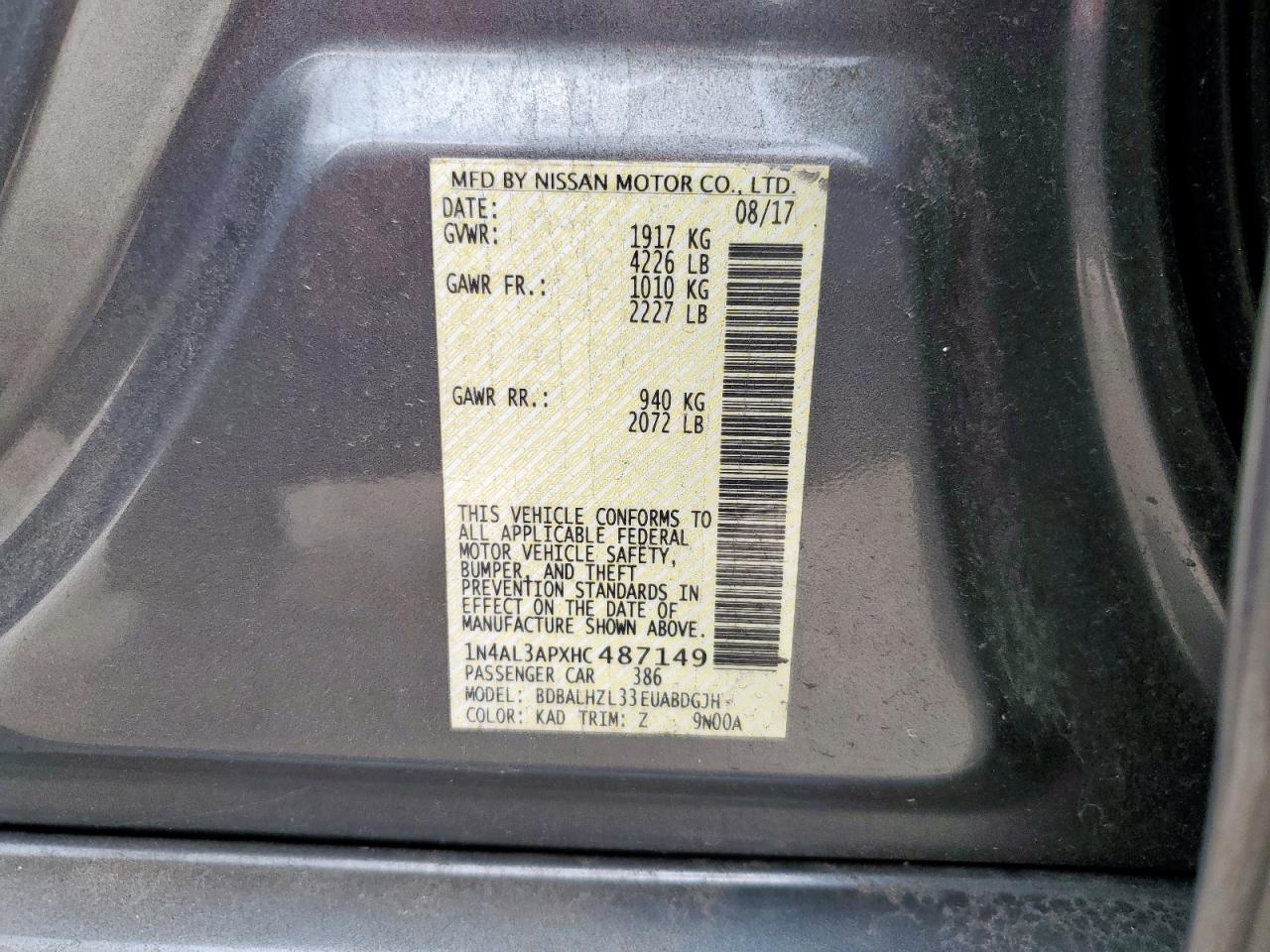 Колір СірийЦиліндри 4VIN 1N4AL3APXHC487149Стан Заводиться та їде (перевірено)Ушкодження Передня або задня