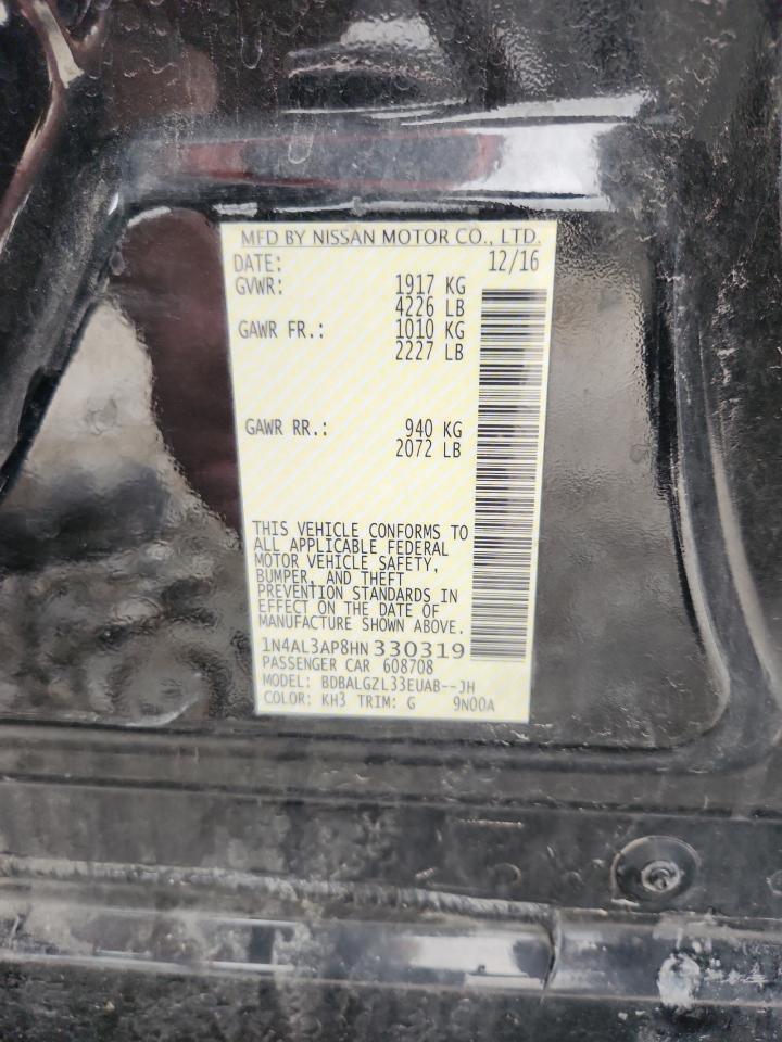 Колір ЧорнийЦиліндри 4VIN 1N4AL3AP8HN330319Стан ЗаводитьсяУшкодження З боків