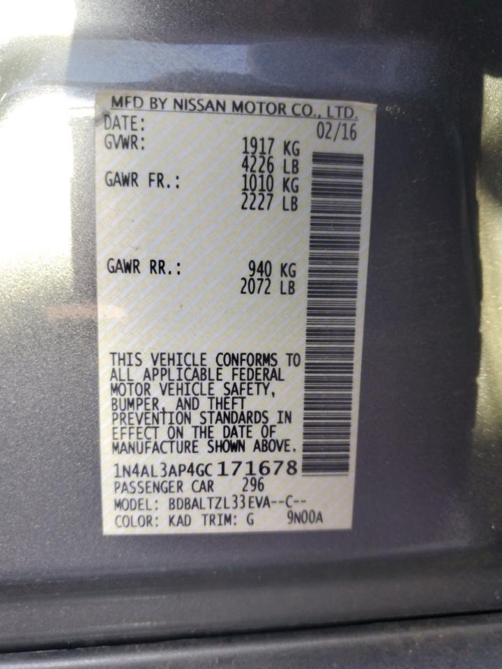 2016 NISSAN ALTIMA - 1N4AL3AP4GC171678, колір - Сірий, 2.5, Бензин, із США