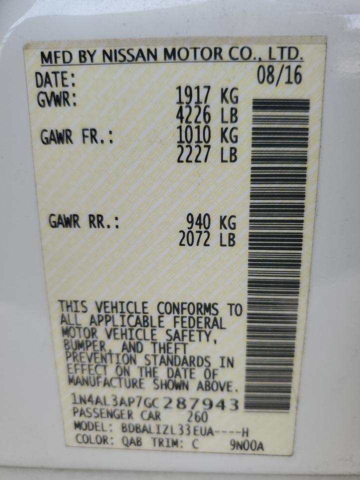 Колір БілийЦиліндри 4VIN 1N4AL3AP7GC287943Стан Заводиться та їде (перевірено)Ушкодження Передня або задня