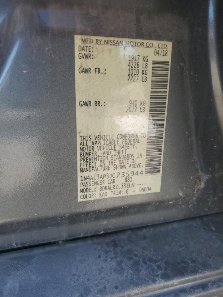 2018 NISSAN ALTIMA - 1N4AL3AP3JC235944, колір - Сірий, 2.5, Бензин, із США