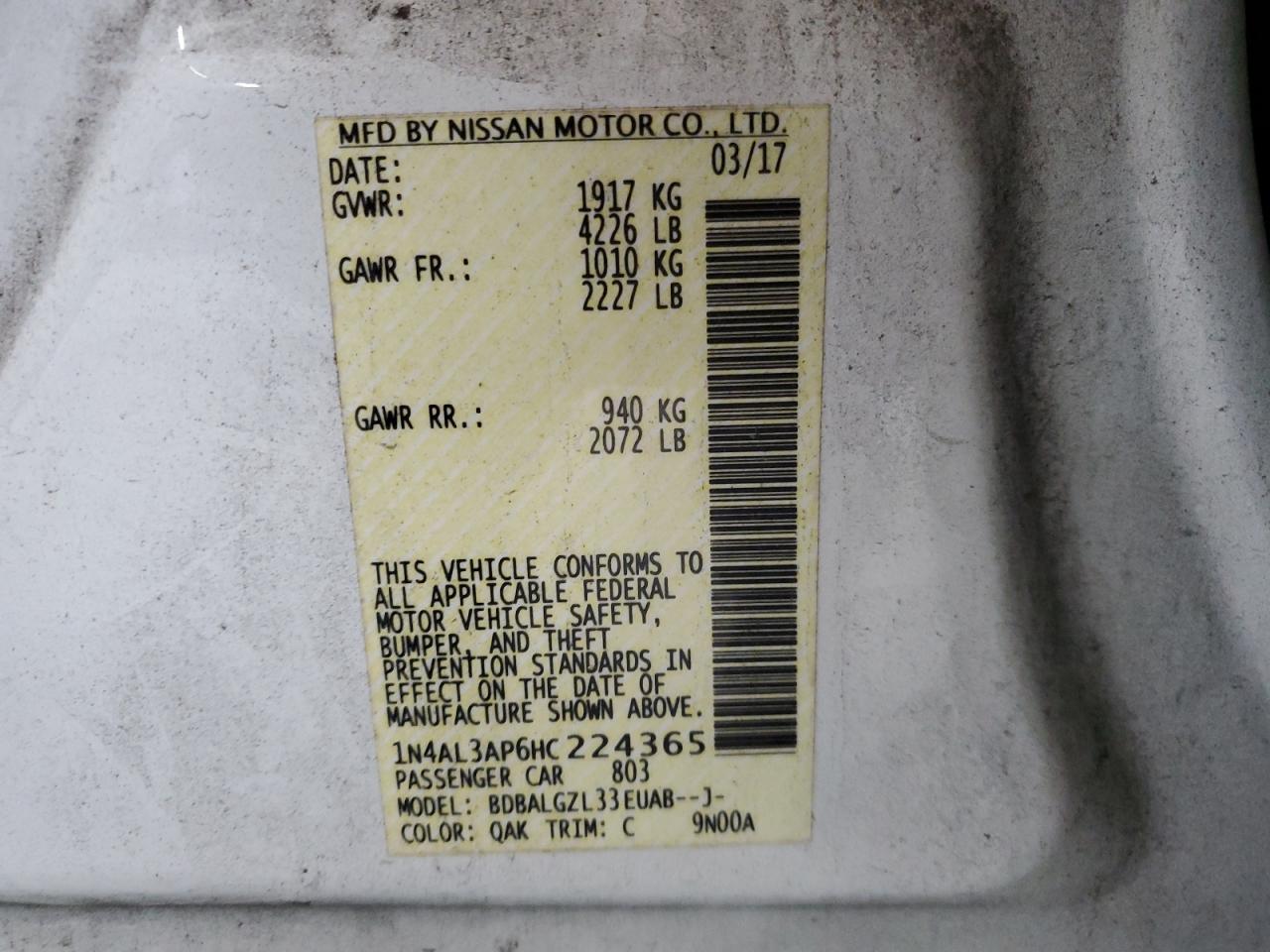2017 NISSAN ALTIMA - 1N4AL3AP6HC224365, колір - Білий, 2.5, Бензин, із США