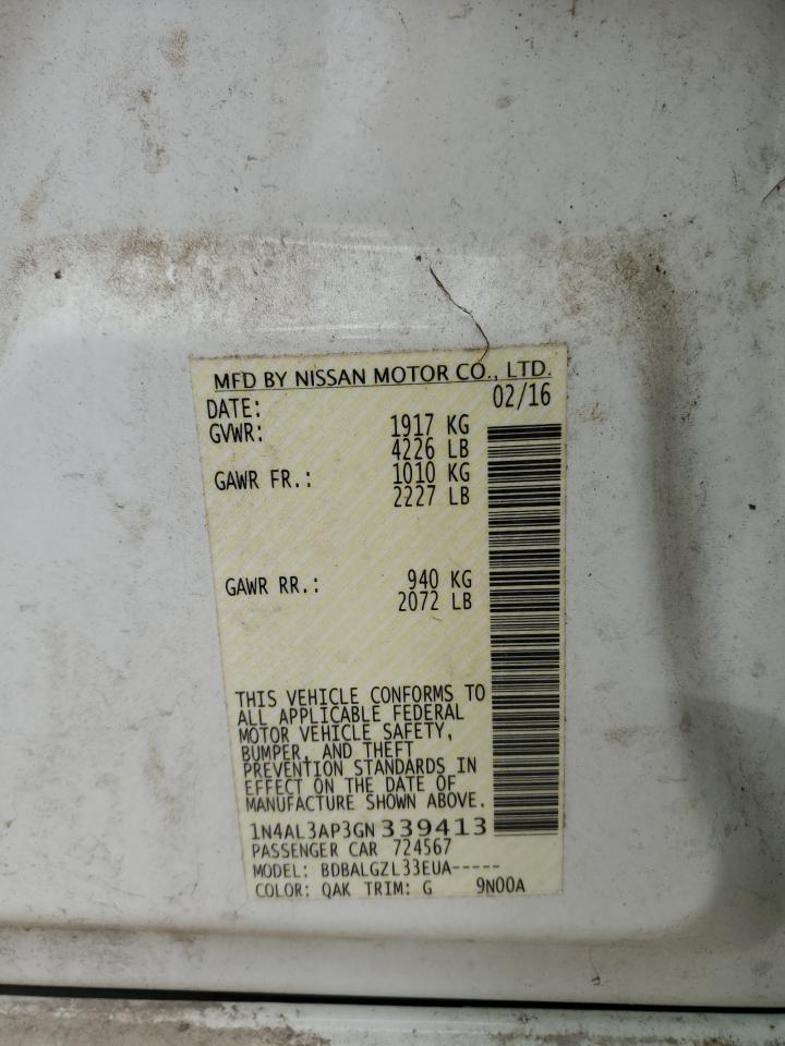 2016 NISSAN ALTIMA - 1N4AL3AP3GN339413, колір - Білий, 2.5, Бензин, із США
