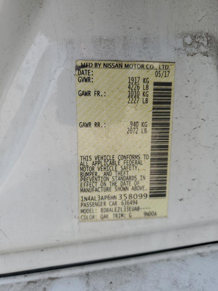 2017 NISSAN ALTIMA - 1N4AL3AP6HN358099, колір - Білий, 2.5, Бензин, із США