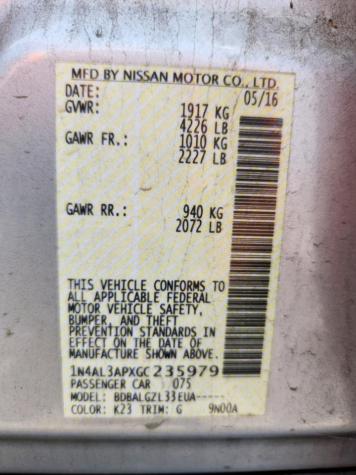 2016 NISSAN ALTIMA - 1N4AL3APXGC235979, колір - Срібний, 2.5, Бензин, із США