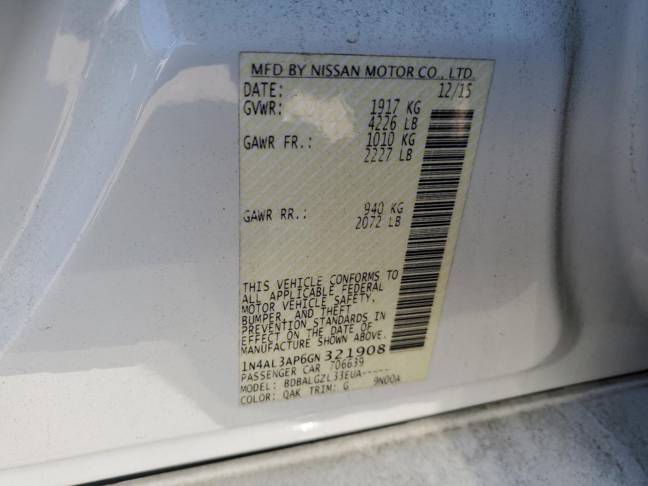 2016 NISSAN ALTIMA - 1N4AL3AP6GN321908, колір - Білий, 2.5, Бензин, із США