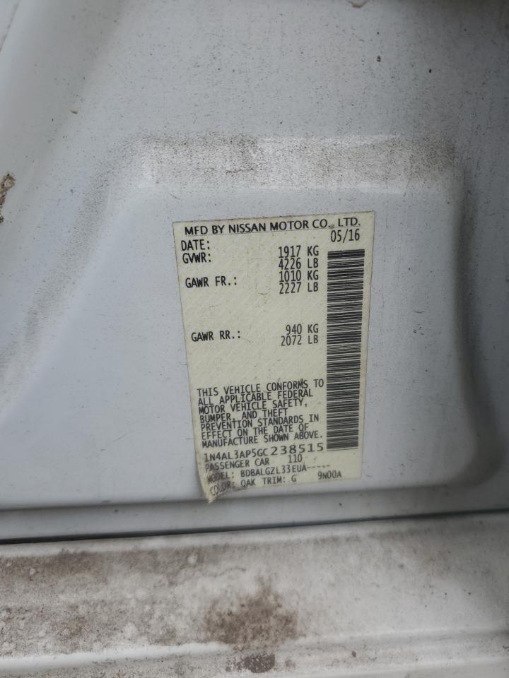 2016 NISSAN ALTIMA - 1N4AL3AP5GC238515, колір - Білий, 2.5, Бензин, із США
