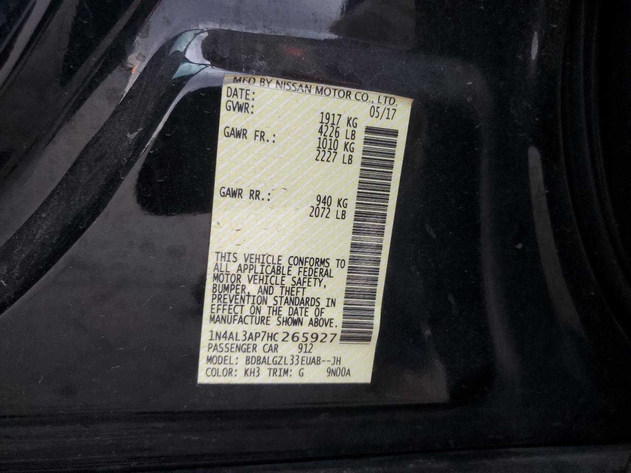 Колір ЧорнийЦиліндри 4VIN 1N4AL3AP7HC265927Стан Заводиться та їде (перевірено)Ушкодження Низ