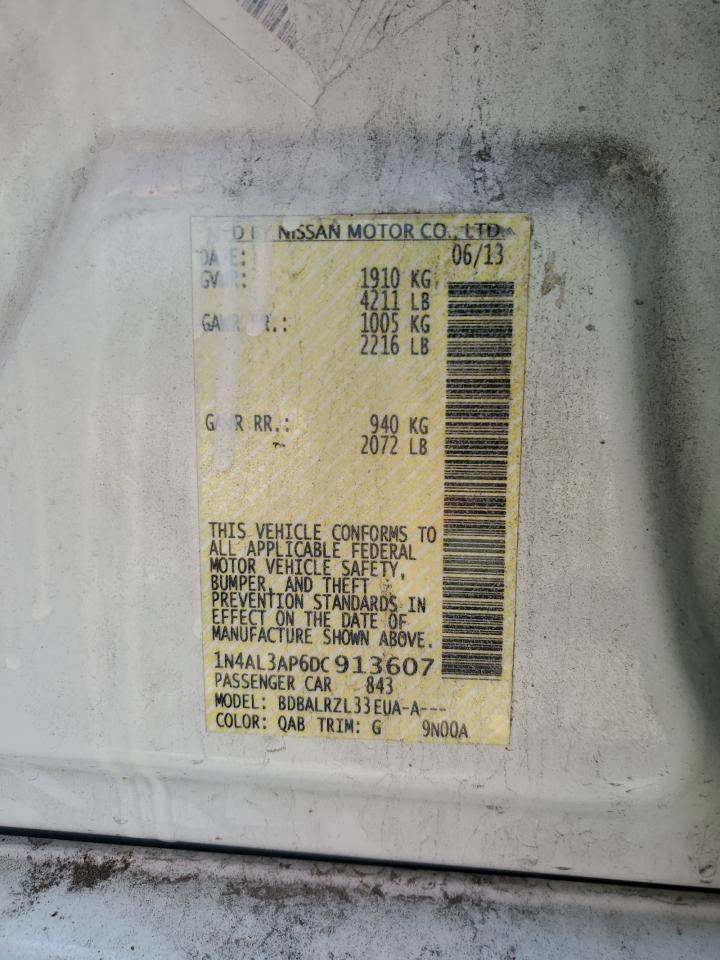 2013 NISSAN ALTIMA - 1N4AL3AP6DC913607, колір - Білий, 2.5, Бензин, із США