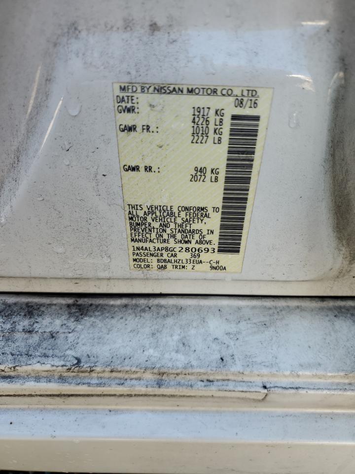 2016 NISSAN ALTIMA - 1N4AL3AP8GC280693, колір - Білий, 2.5, Бензин, із США