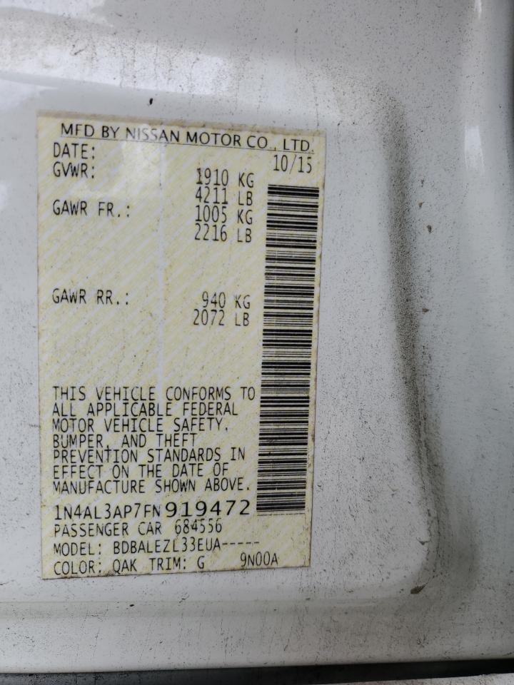 2015 NISSAN ALTIMA - 1N4AL3AP7FN919472, колір - Білий, 2.5, Бензин, із США