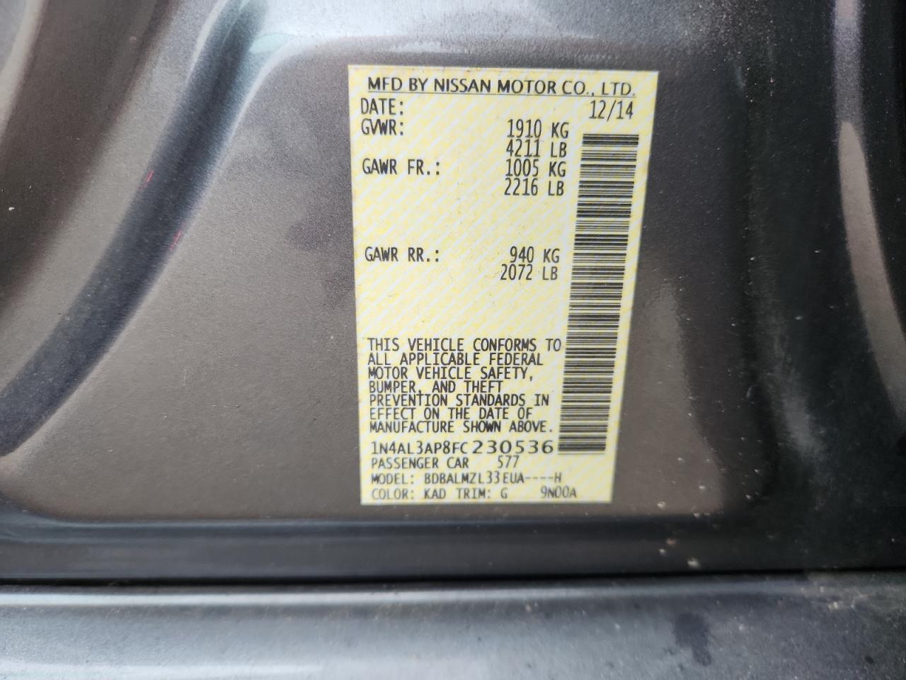 Колір СірийЦиліндри 4VIN 1N4AL3AP8FC230536Стан Заводиться та їде (перевірено)Ушкодження З боків