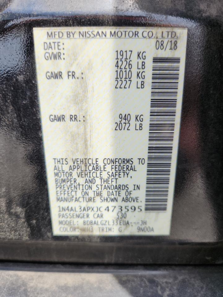 2018 NISSAN ALTIMA - 1N4AL3APXJC473595, колір - Чорний, 2.5, Бензин, із США