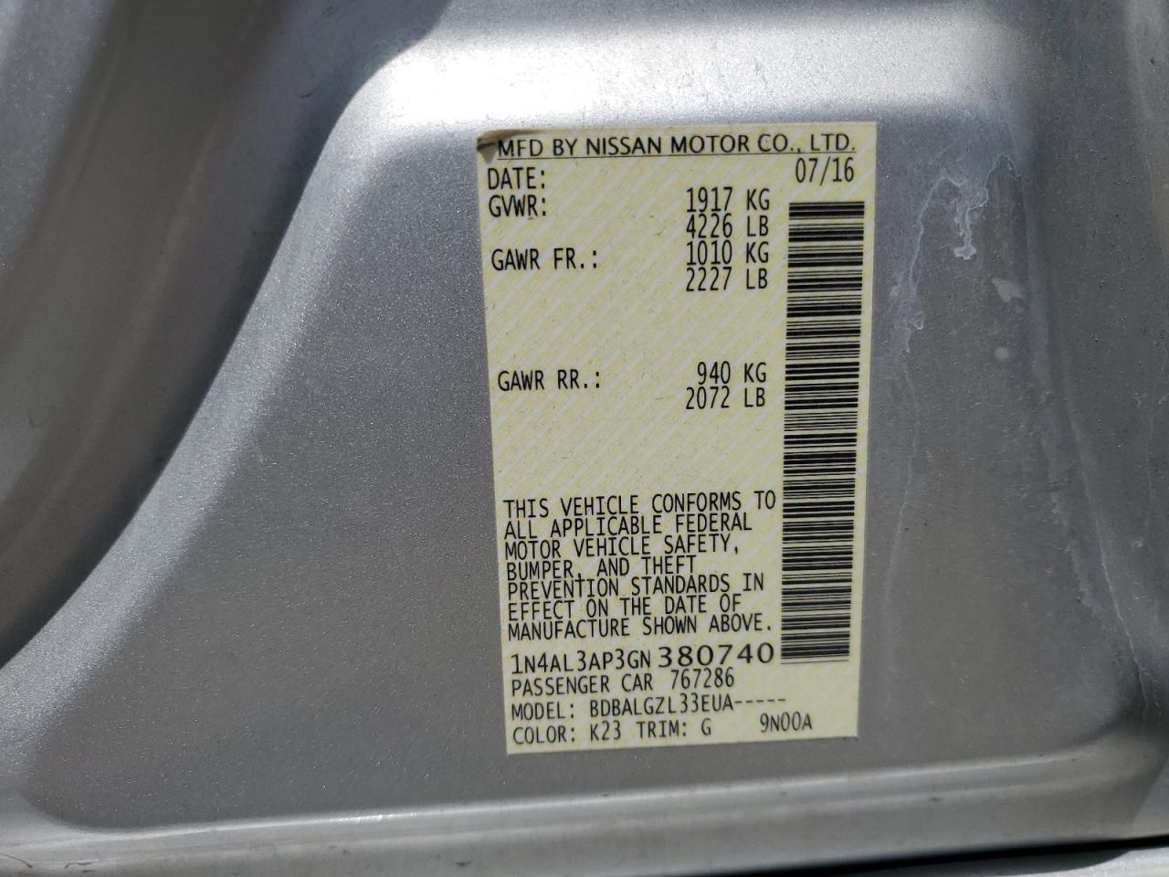 2016 NISSAN ALTIMA - 1N4AL3AP3GN380740, колір - Срібний, 2.5, Бензин, із США